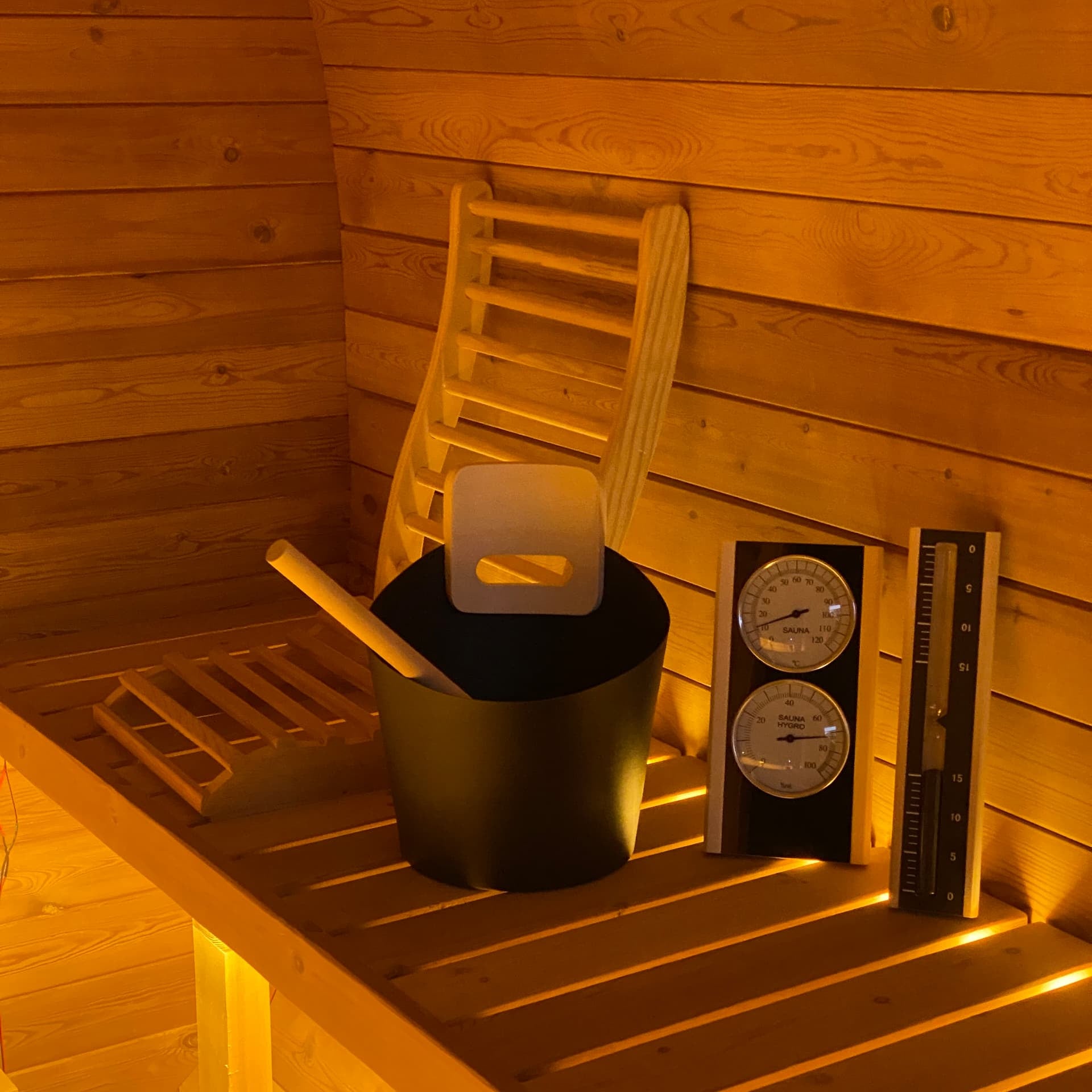 With a bucket, ladle, backrests, timer, and thermometer, this accessory set gives you everything you need for a comfortable, authentic sauna ritual.